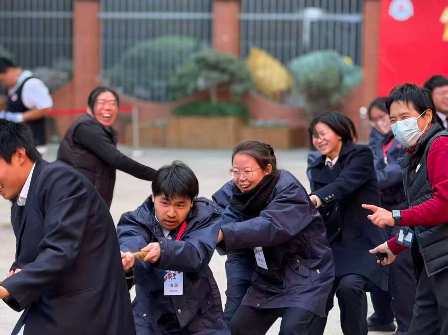 比赛哨声响起的那一刻,我们全班同学紧握长绳,身体后倾,齐声喊着整齐的口号,每一份力气都朝着同一个方向汇聚。绳子中间的红绸带来回挪动,每一寸拉扯都凝聚着我们的坚持与默契。没有人轻言放弃,哪怕手臂发麻、额头冒汗,也始终牢牢攥住绳子,坚守着自己的位置。