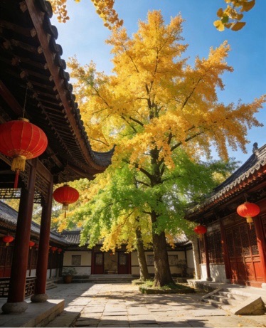这秋从不是落幕的序章,而是时光沉淀后的温柔献礼。古建的飞檐与古树的枝桠交错,白墙黛瓦衬着澄澈的蓝天,每一寸光景都在诉说:秋是成熟,是收获,是历经春夏生长后,坦然拥抱岁月的丰盈。