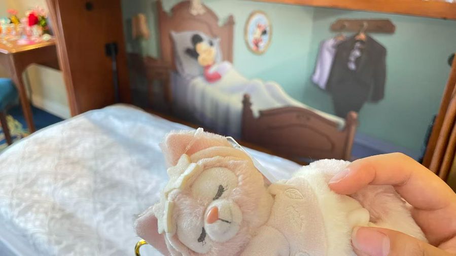 最让我惊喜的是酒店的主题房间。推开房门,床头的迪士尼城堡夜灯缓缓亮起,床上摆着米奇和米妮的玩偶,书桌抽屉里还藏着迪士尼主题的明信片和贴纸。讲解员告诉我们,这些小物件都是可以免费带走的,瞬间让我觉得幸福感爆棚。