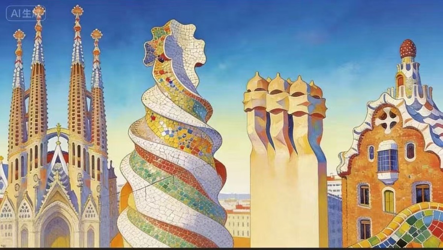 在巴塞罗那,高迪把石头变成了流淌的熔岩,把烟囱捏成戴头盔的士兵,让屋脊如巨龙的脊背般起伏。圣家堂是他用石头写下的祈祷书,至今仍在生长:石柱如参天巨树,拱顶如盛开的花,彩色玻璃将阳光滤成天国瀑布。