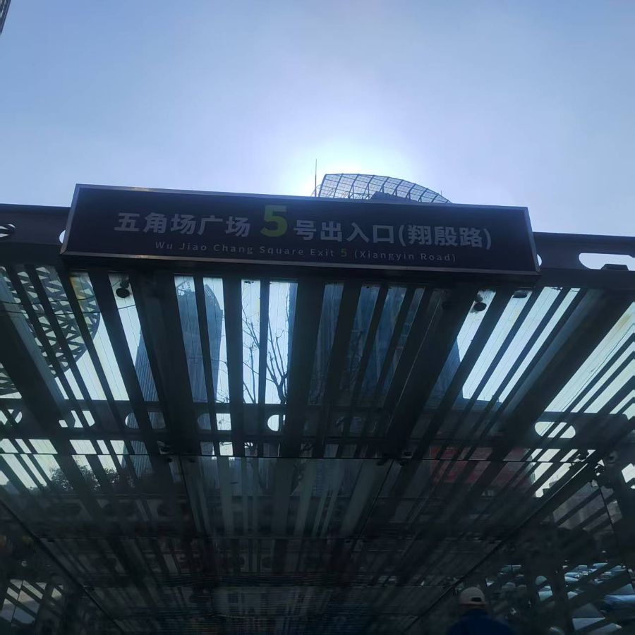 走出五角场广场5号地铁口,翔殷路的风一下子吹到脸上。蓝色的指示牌挂在金属架子上,绿底的数字“5”特别显眼,阳光透过格栅的缝隙洒下来,在地上投出一道道细长的影子。
