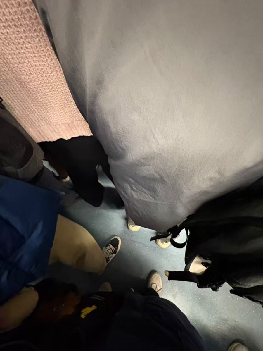 在这极致的拥挤里,人们却默契地维系着一种脆弱的秩序:尽量缩紧自己,给旁人一寸转身的余地;瞥见空座,目光先寻找更需要的人。当报站声响起,那条密不透风的人墙又会突然裂开一条通路,让到站的人流泻出去。