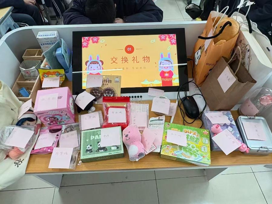 有人抽到暖心围巾,有人收获搞怪钥匙扣,没有贵重的礼物,全是满满的心意。交换的不只是小物件,更是藏在包装里的惊喜和同学们的小默契。阳光洒在教室的礼物堆上,原来最简单的快乐,就是和同班小伙伴一起拆盲盒呀!