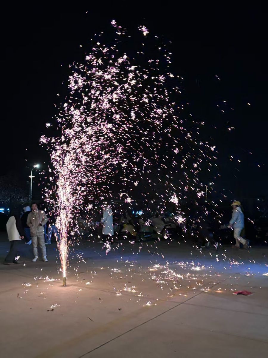 人群或许分散,但烟火的温度让人倍感温暖。这种绚烂而短暂的美,提醒我们要珍惜当下的每一刻。愿这璀璨的烟火能照亮前路,让我们在新的一年里,如这向上的火花一般,满怀热忱,一往无前。
