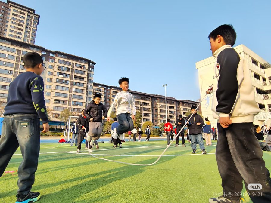 “叮铃铃——”下课铃声一响,原本安静的校园瞬间沸腾起来。同学们像一群快乐的小鸟,飞奔到操场上,参加丰富多彩的大课间活动。