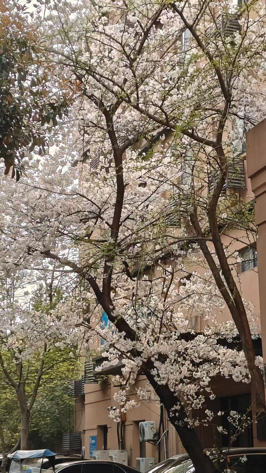 春风穿巷,撞进满树繁花里。眼前的樱花树,是春日最慷慨的馈赠,浅白的花瓣层层叠叠,缀满深褐的枝桠,将寻常的居民楼晕染成温柔的画卷。