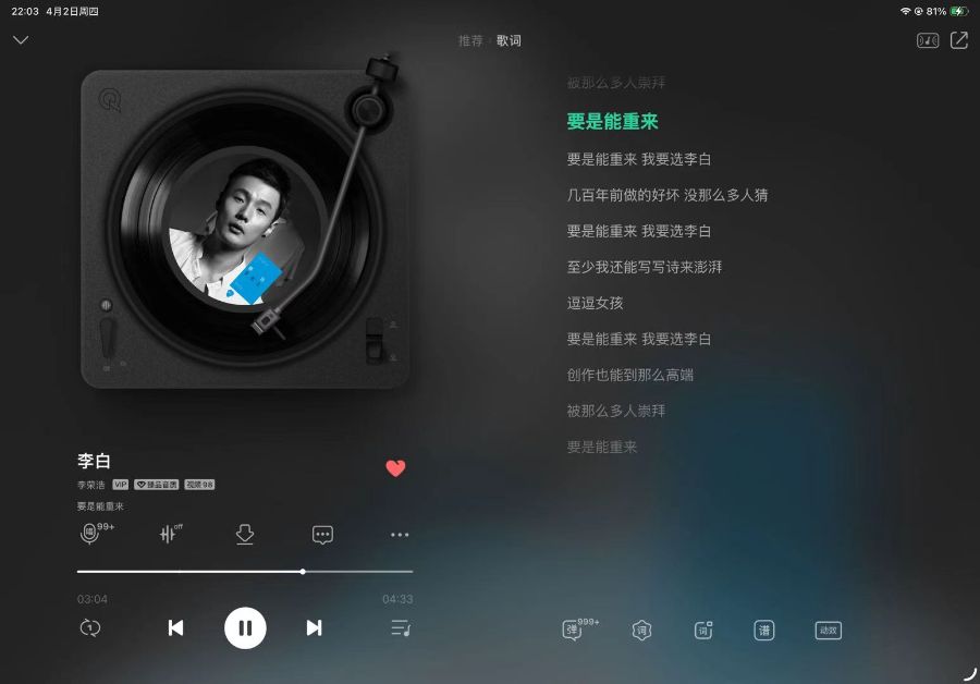歌词以李白为意象,借“要是能重来,我要选李白”的直白呐喊,道尽对功名利禄的厌倦。“创作也能到那么高端,被那么多人崇拜”道破对纯粹热爱的渴望,“几百年前做的好坏,没那么多人猜”则暗含对当下过度评判的反感。