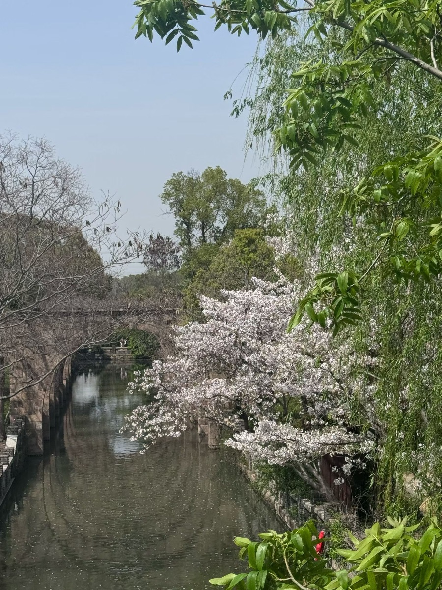 古桥、流水、垂柳、樱花,构成了一幅绝美的江南水墨画。清澈的河水倒映着苍劲的石桥轮廓,将岁月的沉淀温柔揽入怀中。一树粉白的樱花开得正盛,那不是浓烈的艳红,而是恰到好处的温柔,与岸边抽芽的嫩绿相互映衬。春风拂过,花瓣便随着流水缓缓漂远,仿佛将春日的信笺送向了远方。无需多言,这自然的景致就是最好的诗篇。站在桥头,呼吸着混着草木清香的空气,心灵仿佛被这洗净铅华的景色彻底洗礼。春日的美好,大抵就是这般,既有历史的沉淀,又有花开的惊艳。