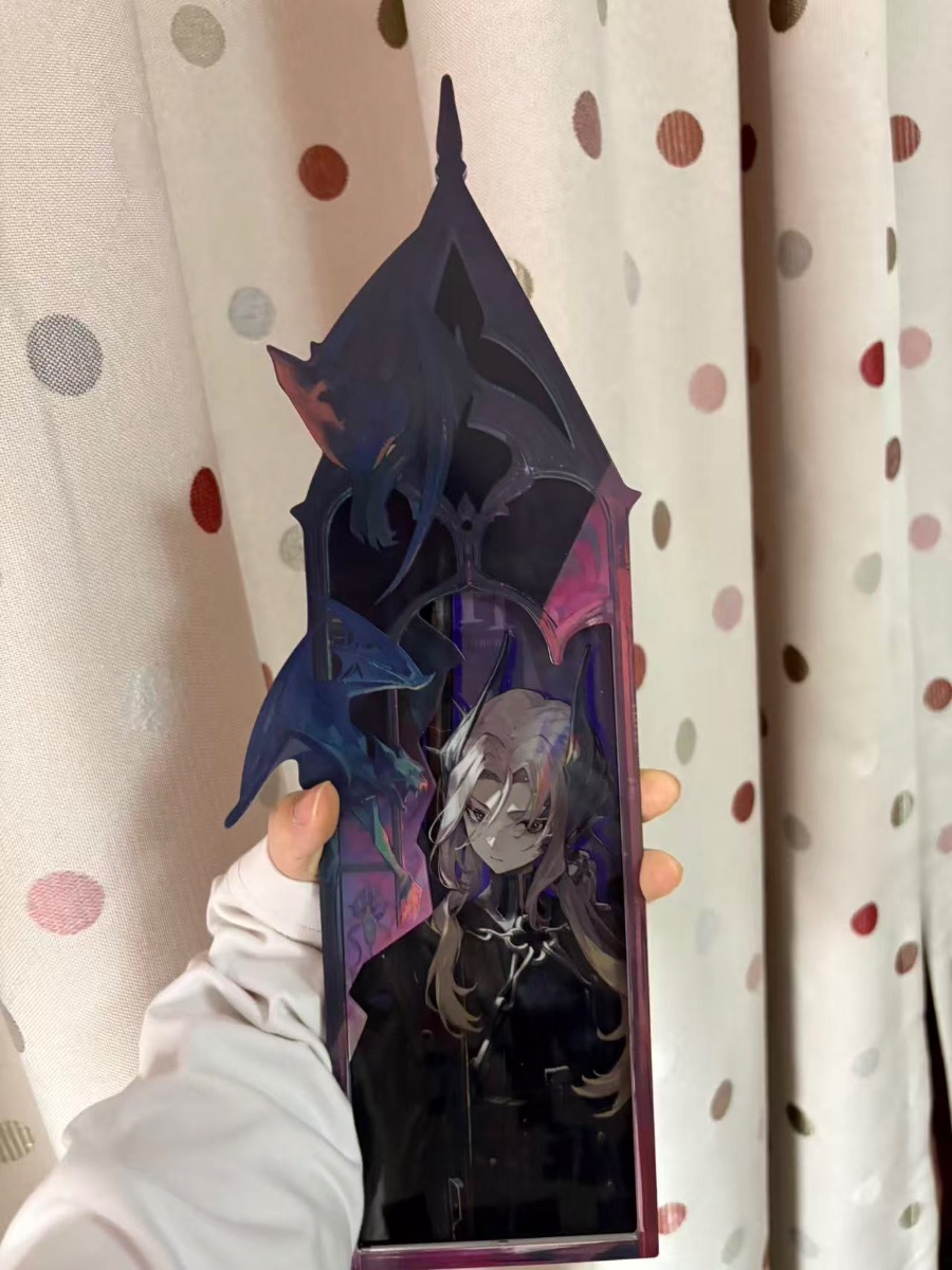 那是漫展上带回的立牌,少年执剑回眸,衣袂翻飞。原以为只是件普通周边,久了却发现,清晨阳光斜照时,剑尖会折射出细碎虹彩;深夜台灯下,人物影子被拉长投在墙上,像要破框而出。
