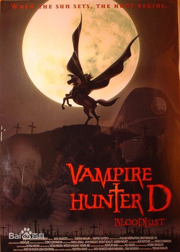 《吸血鬼猎人 D》是日本作家菊地秀行 1983 年起创作的经典奇幻小说系列,天野喜孝负责插画。故事设定在公元 12090 年的末世废土,曾统治地球的吸血鬼 “贵族” 日渐衰微却仍威胁人类。主角 D 是人类与吸血鬼的混血,兼具吸血鬼的强大与人类的阳光耐受,却被两方排斥,孤独游走于荒野。他左手寄宿着能言善辩的寄生生物,助他猎杀吸血鬼、守护人类。作品融合科幻、哥特、西部与恐怖风格,后被改编为 1985 年、2000 年两部动画电影,2000 年版《血欲》以暗黑美学与精良制作成为经典。