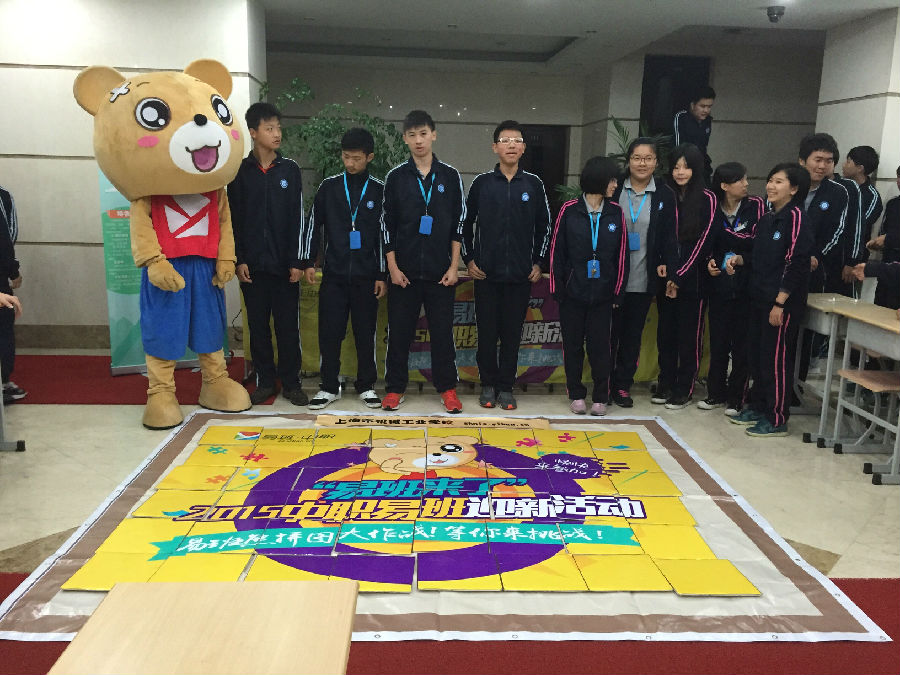 20151029日的中午,对于上海市机械工业学校的全体一年级新生来说或许是一个特殊的日子,在这一天,我们终于迎来了期待已久的中职易班迎新拼图活动。活动当天,我们很荣幸的邀请到了来自上海市易班管理中心的胡老师和钭老师和我们共同见证这样一个神圣的时刻。虽然天公不作美,下起了毛毛细雨,我们的活动被迫从操场转移到了教学楼一楼大厅,这对我们的活动多多少少造成了一些影响,但这丝毫没有影响到同学们的热情。或许,在同学们看来,这一场秋雨更是对我们拼图活动的一个小小的考验,会场的热烈气氛与室外的阵阵寒意形成了鲜明的对比,同学们积极参与各项小游戏,各个展台前气氛热烈,尤其是在拼图活动的现场,来自各个新生班级的10位同学,在没有任何排练的前提下,通力协作,以410秒的成绩取得了拼图活动第五名的好成绩,用自己对拼图活动的热情和对中职易班的热情回应了这秋雨带来的不便。